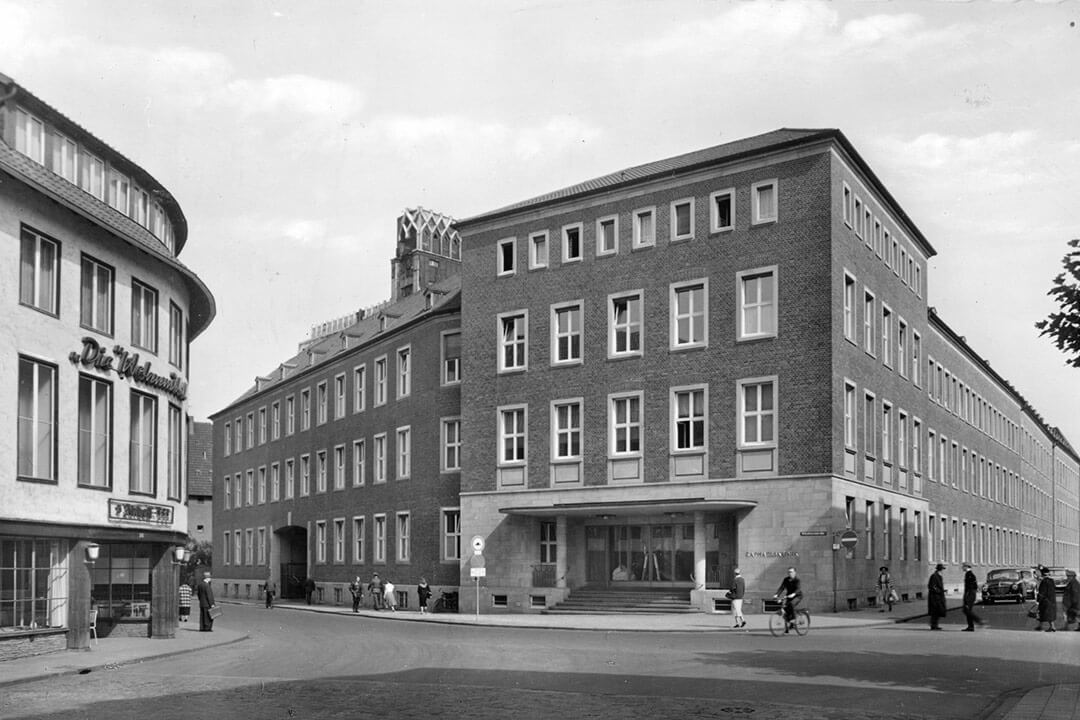 Nach dem Ersten Weltkrieg weiteten die Schwestern ihren Dienst aus: Zur Arbeit im Krankenhaus und in der ambulanten Pflege kamen Dienste in Kindererholungsheimen, Altenheimen, Waisenhäusern und Kindergärten hinzu. Durch geschickte Grundstückskäufe entlang der heutigen Windthorststraße war es möglich, einen Klinikerweiterungsbau zu beginnen. Für die benötigte Bettenzahl reichte die Fläche bei der üblichen Geschosszahl allerdings nicht aus, also musste sechsgeschossig in die Höhe gebaut werden. So erfolgte am 3. Dezember 1928 der Spatenstich zum Bau des ersten Hochhauses in Münster, das mit seinem charakteristischen Kupferdach bis heute das Stadtbild der Domstadt prägt.
